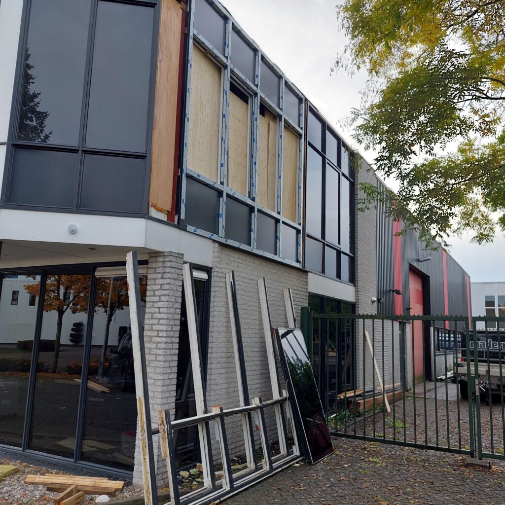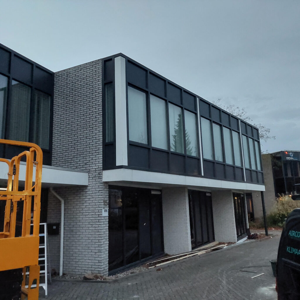 Bij dit kantoorpand in Veenendaal hebben we de hele bovenverdieping verduurzaamt door de toepassing van kunststof kozijnen, wat het pand meteen een moderne en luxe uitstraling geeft.